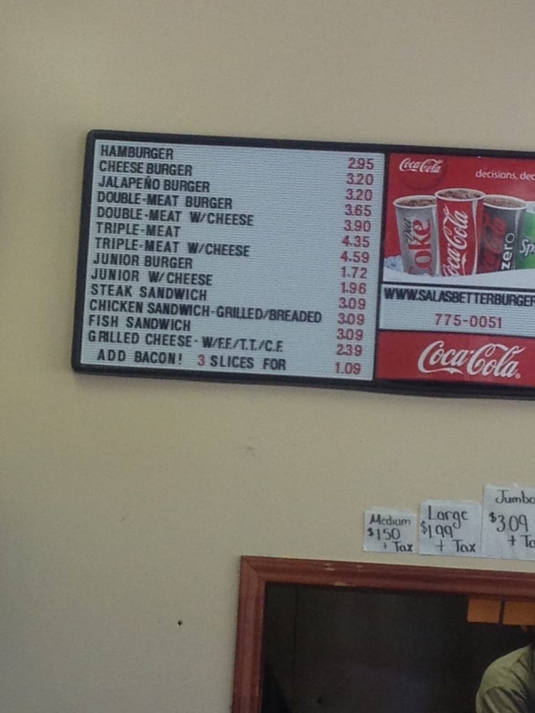 Salas Better Burger is a burger joint located in Del Rio, TX, known for its outstanding burgers and large, tasty fries. Customer reviews praise the great service, fair prices, and homey feel of the establishment. The menu features a variety of options, including nuggets, jalapeno bombers, onion rings, and a selection of fries. Highlights include the junior cheeseburger, bacon cheeseburger, and steak sandwich, all prepared with fresh ingredients and served hot. The burgers are described as delicious and reminiscent of homemade patties. The employees are noted for their friendliness and willingness to accommodate customers. With options for vegetarians, outdoor seating, and convenient amenities like Wi-Fi and drive-thru service, Salas Better Burger offers a comfortable and enjoyable dining experience for visitors and locals alike.